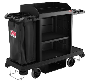 - The cart comes standard with one laundry bag, 2 vacuum holders, a traditional glass rack, and integrated cleaning tool storage for cleaning supplies